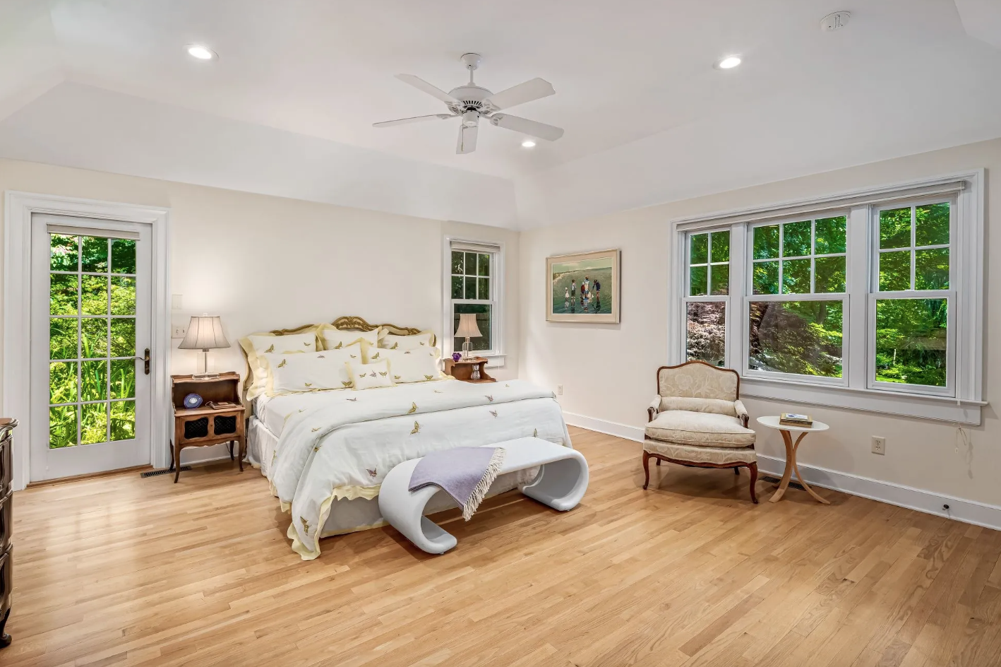 This cedar shake residence, designed by renowned architect Hiland Hall Turner, features over 6,700 square feet of resort-style accommodations, including five bedrooms and five-and-a-half baths. This home is not only luxurious but also offers functional features such as a first-floor primary suite, ideal for those seeking one-floor living.