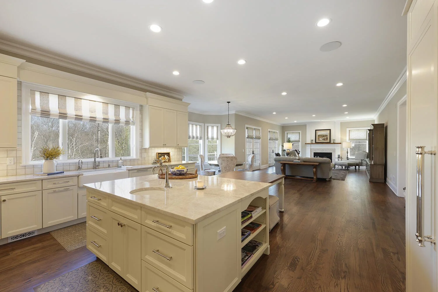 Designed for the modern entertainer, the first floor boasts an open-concept layout flooded with natural light, offering flexible dining and entertainment options for every occasion. The gourmet luxury chef's kitchen is a culinary haven, equipped with top-of-the-line Thermador appliances, quartzite countertops, and an oversized island with a prep sink and butcher block extension—a gathering place for family and friends to create unforgettable memories.